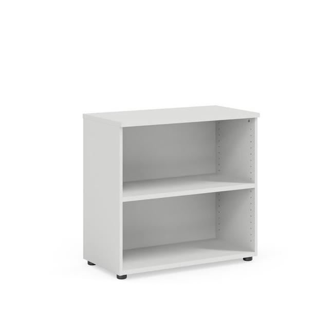 : BASICPolicová skriňa BASIC, 1 polica, otvorená, 80x40x76,5cm, biela Popis produktu• Kancelársky nábytok BASIC sa vyrába z kvalitnej laminovanej drevotriesky/ L-DTD/ hrúbky 22 mm a 16 mm s ochrannou ABS hranou odolnou voči oderu • Skrine majú výšku od 75,3 cm do 182,1 cm a šírku od 40 cm do 100 cm • Všetky skrine majú hĺbku 40 cm. Vnútorné police majú nosnosť max.