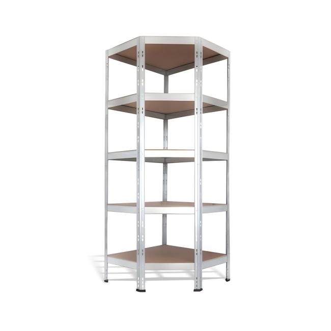 Policový regál rohový, s 5 doskovými policami, š.70 x h.40 x v.180 cm