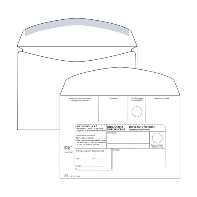Biele papierové obálky rozmerov 162 × 229 mm s okienkom, popisom a lichobežníkovou klopou, olizové, 80 g/ m². Balenie obsahuje 100 ks.