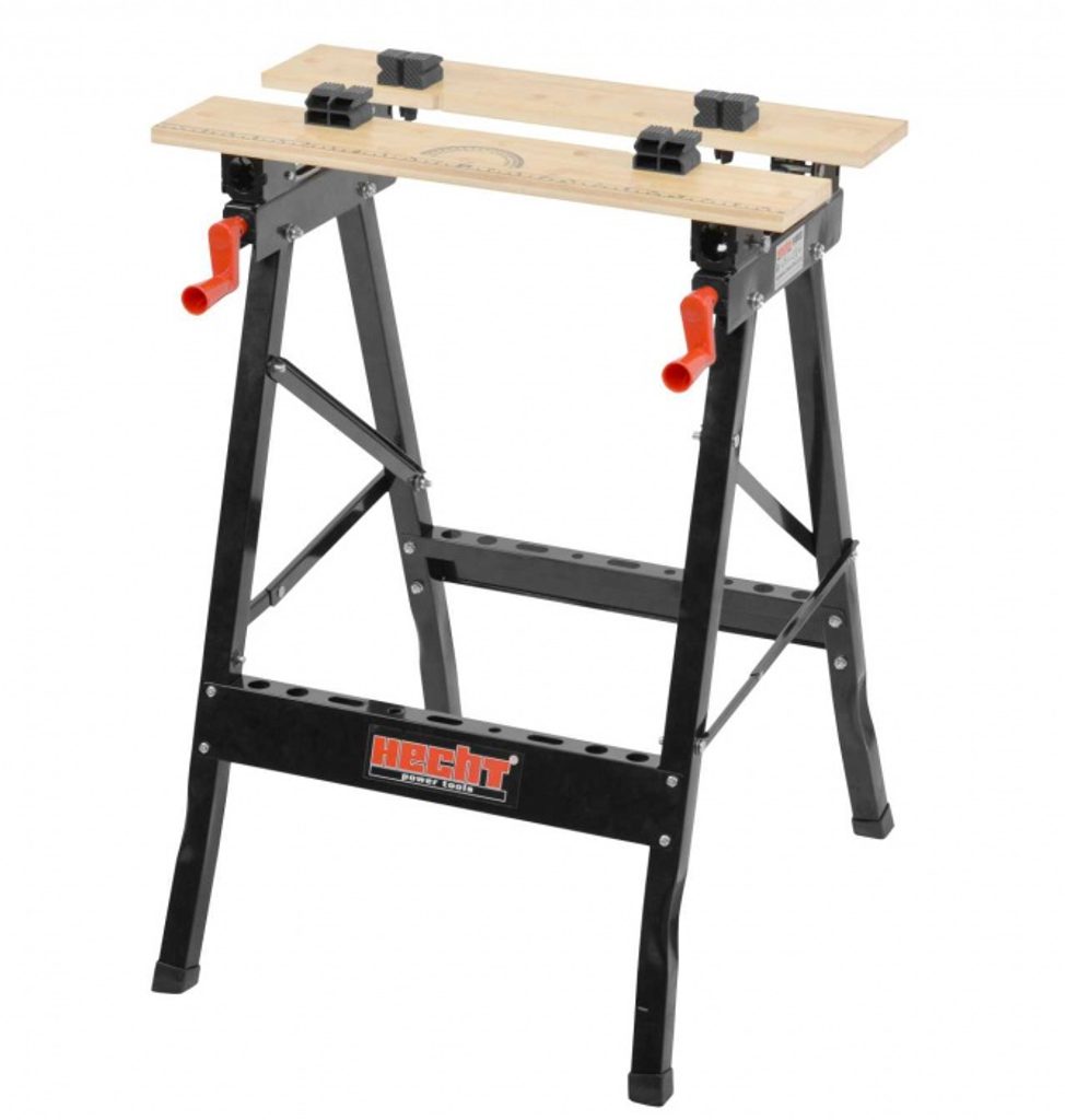 Univerzálny stabilný pracovný stôl HECHT 0003. Stôl je možné jednoducho a rýchlo zložiť pre uloženie, alebo na prepravu.