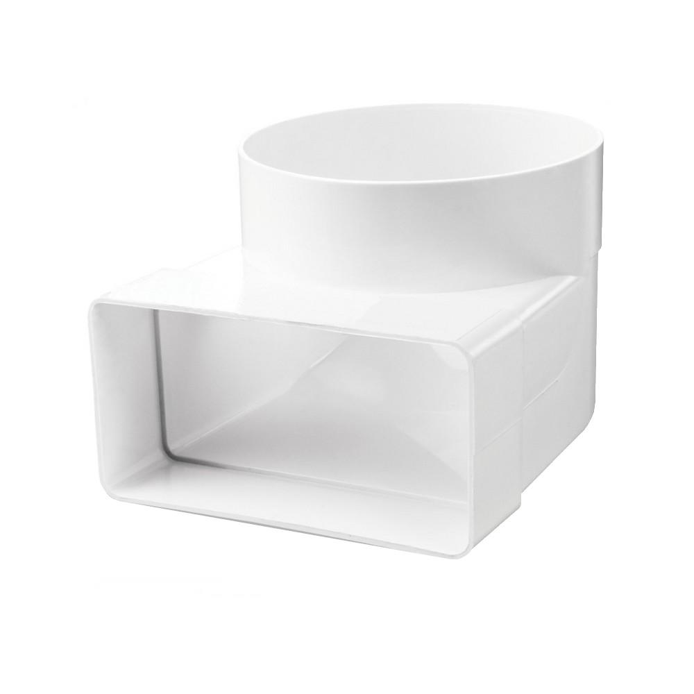 Prechodové 90-stupňové koleno so spojkou (kruhové/štvorcové koleno) je určené na prechod medzi rôznymi tvarmi plastových rúr s priemerom 100 jednoduchým zasunutím do seba. Koleno je vhodné do maximálnej teploty 45 °C.