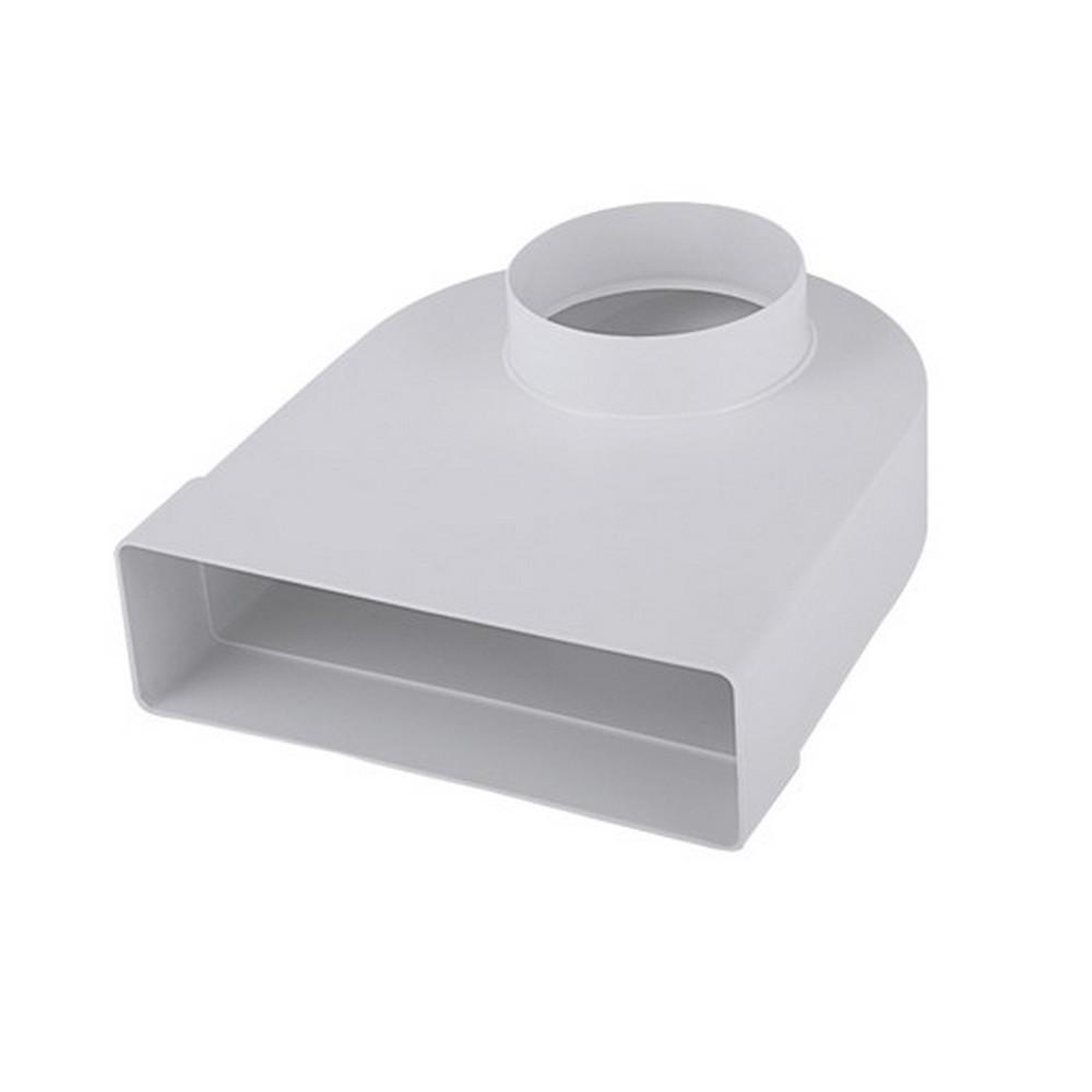 10.08 Prechodové 90-stupňové koleno so spojkou (okrúhle/štvorcové koleno) je určené na prechod medzi rôznymi tvarmi plastových rúr s priemerom 125 jednoduchým zasunutím do seba. Koleno je vhodné do maximálnej teploty 45 °C.