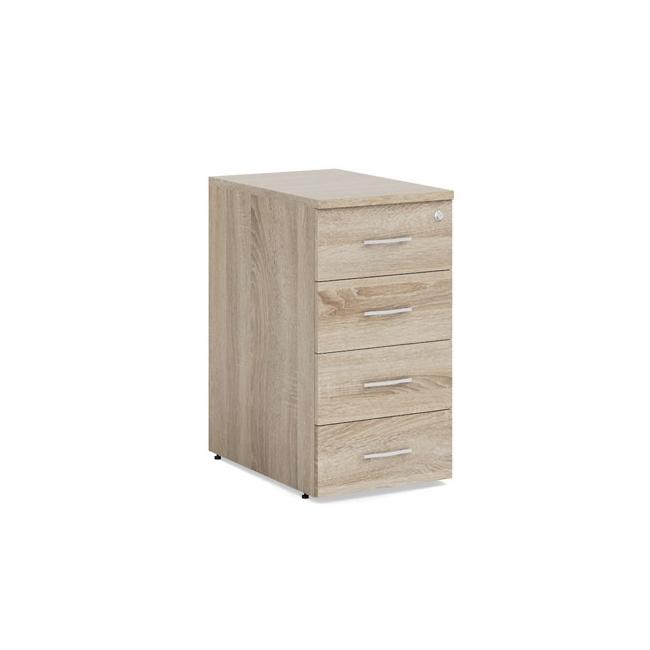 : BASICPrístavný kontajner BASIC, 4-zásuvkový s centrálnym zámkom + 2 kľúče, 41x76x60cm, dub Sonoma Popis produktu• Kancelársky nábytok BASIC sa vyrába z kvalitnej L-DTD hrúbky 22 mm a 16 mm s ochrannou ABS hranou odolnou voči oderu• Boky a dno kontajnerov sa vyrábajú z L-DTD hrúbky 16 mm a horná doska v hrúbke 22 mm• Kontajnerové zásuvky sa vyrábajú z L-DTD hrúbky 12 mm a inštalujú sa na valčekové vodiace lišty• Kontajnery sú uzamykateľné, sú vybavené centrálnym zámkom s uzamykaním na kľúč. Súčasťou balenia sú 2 kusy kľúčov• Kontajnery na kolieskach môžu mať 3 alebo 4 zásuvky a ľahko sa môžu premiestňovať po miestnosti• Prístavné kontajnery sa vyrábajú v rovnakom dizajne a výške ako pracovné stoly a umožňujú tak zväčšenie pracovnej plochy stola.