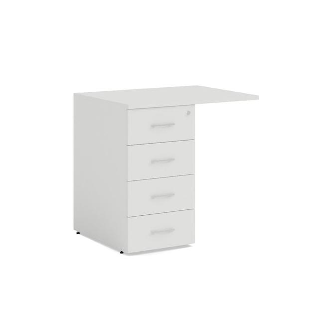 Prístavný kontajner BASIC, 4-zásuvkový so zámkom, 80x76x60cm, biela