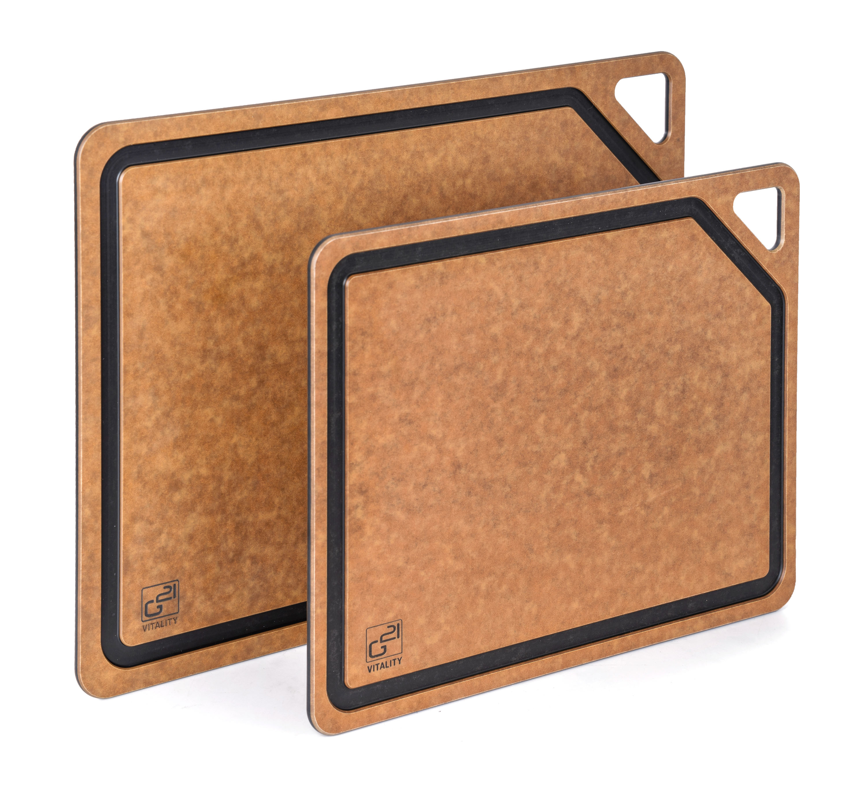 : G21Krájacie dosky G21 EcoCut z prírodnej celulózy, sada 2 ks (30 × 23,5 cm a 37 × 27,4 cm), s protišmykovou úpravou. Hygienické, neporézne a odolné dosky sú šetrné k nožom a vhodné aj do umývačky riadu.