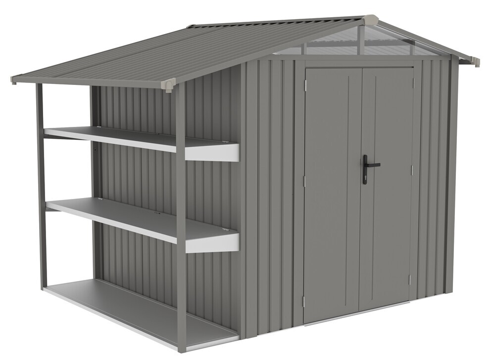 : RojaplastPlechový záhradný domček AMY X-B – prémiová kvalita a funkčnosť. Záhradný domček AMY X-B je skvelou voľbou pre každého, kto hľadá pevný a praktický úložný priestor v záhrade.