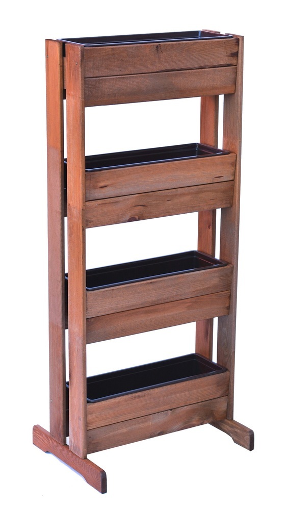: RojaplastDrevený kvetináč z borovicového dreva, v hnedej farbe. Vďaka praktickému dizajnu, ktorý využíva maximum priestoru, bude kvetináč skvelým doplnkom vo Vašej záhrade či na terase.