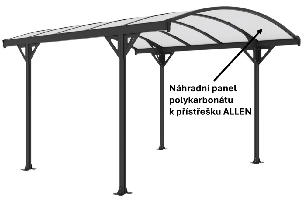 : RojaplastNáhradný panel polykarbonátu je vhodný na výmenu panelu pri všetkých prístreškoch ALLEN s transparentným polykarbonátom. 8 mm hrubý polykarbonát so 100% UV ochranou.