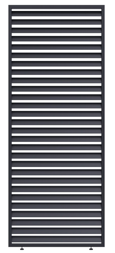 : RojaplastPre maximálne využitie bioklimatických pergol ponúkame aj príslušenstvo v podobe panelu s horizontálnymi fixnými lamelami pre tienenie bioklimatickej pergoly a získanie väčšieho súkromia. Veľmi pevná a stabilná konštrukcia v antracitovej farbe RAL 7016, v matnej povrchovej úprave.