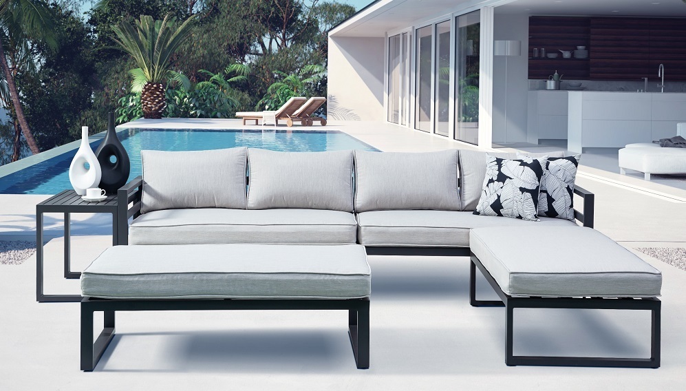 : RojaplastLuxusná súprava s hliníkovou konštrukciou, ktorá je pokrytá sivou práškovou farbou. Moderný dizajn.