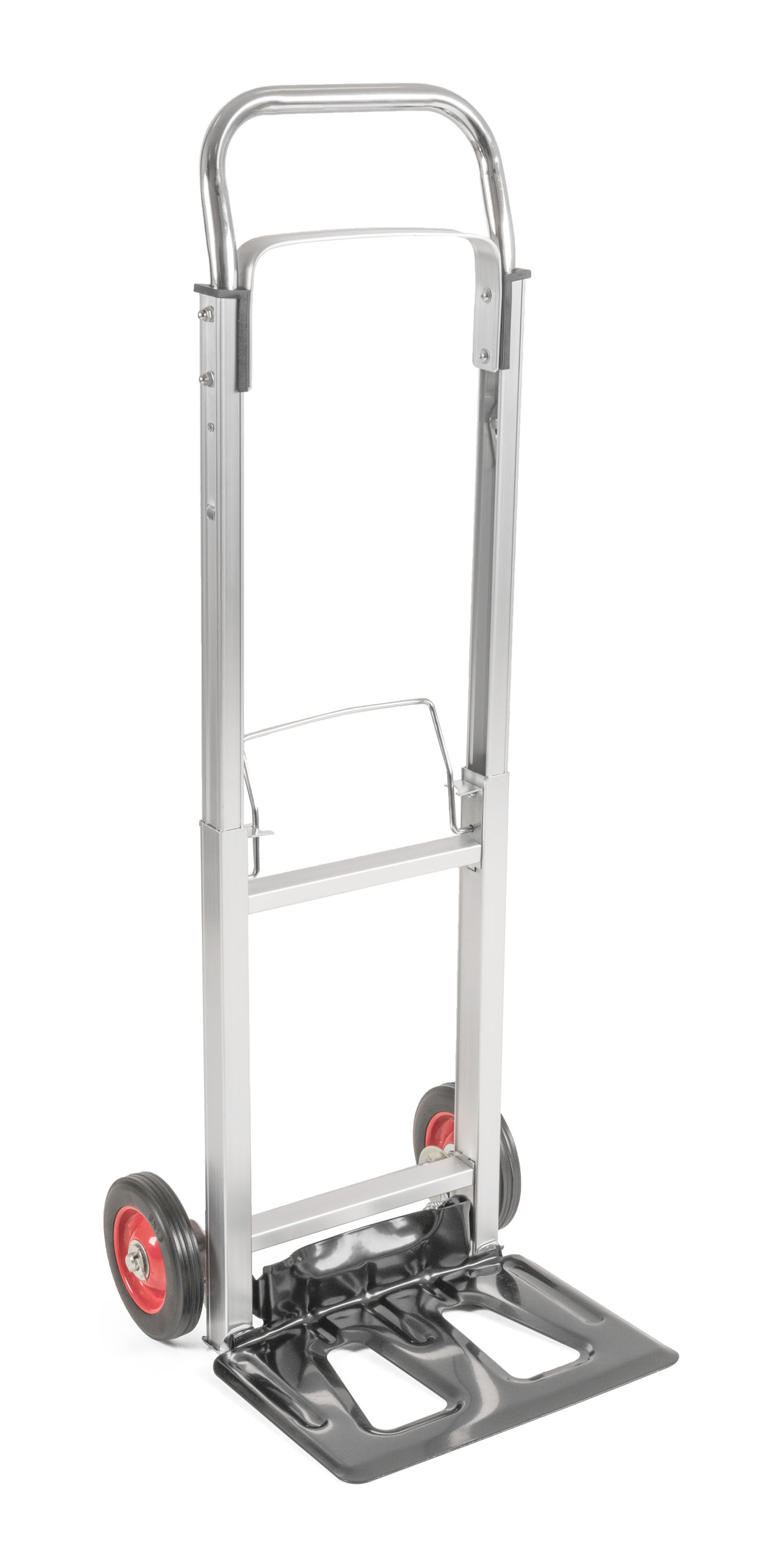 : G21Rudla pre manipuláciu s ťažkými bremenami, teleskopická rukoväť, sklopná lopata, hliník, nosnosť 90 kg, kolesá s priemerom 15 cm, kompaktné rozmery.