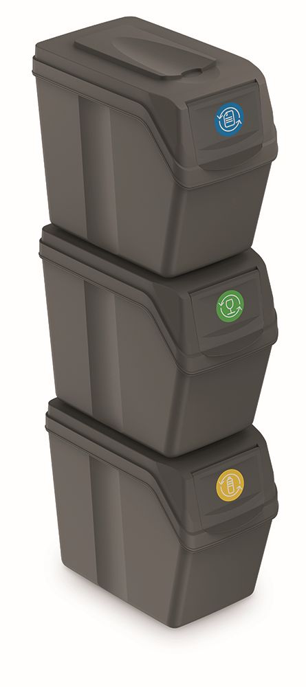 14.03 Sada 3 odpadkových košov SORTIBOX I - objem: 3x20 l, farba: sivý kameň