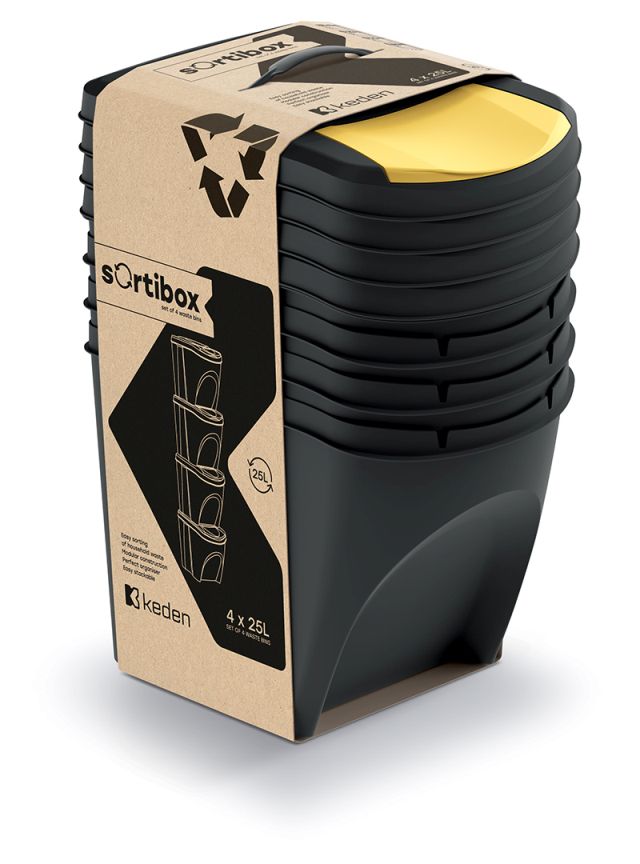 Sada 4 odpadkových košov SORTIBOX - objem: 4x25 l, farba: recyklovaná čierna