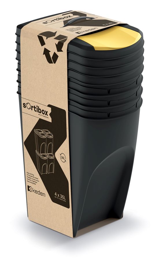 Sada 4 odpadkových košov SORTIBOX - objem: 4x35 l, farba: recyklovaná čierna