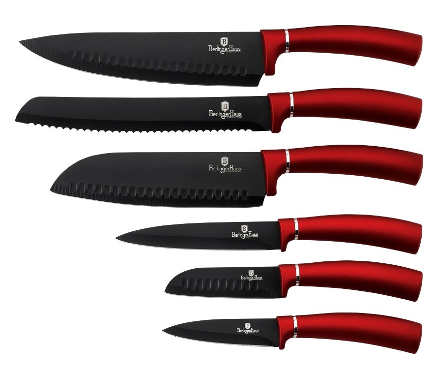 : BerlingerhausSada nožov značky Berlingerhaus kolekcia Burgundy Metallic Line. Obsahuje 6 nožov. Čepele z nerezovej ocele s antibakteriálnym nepriľnavým povrchom Diamond. Mäkčené rukoväte pre pevný úchop.