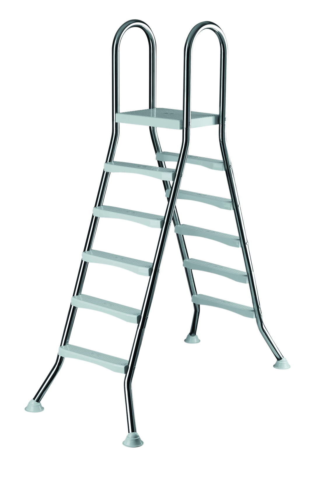 : CFNerezové bazénové schodíky pre nadzemné bazény s výškou 150 cm. 2x 5 schodíkov a plošina, nosnosť do 150 kg.