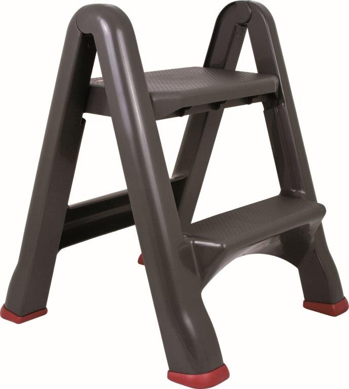 : KeterSkladacie plastové schodíky s 2 stupňami. Nosnosť 150 kg, prvý schod je vo výške 22 cm. Protišmykové nožičky pre bezpečnú prácu vo výške. Celková hmotnosť 3,12 kg, čierna farba.