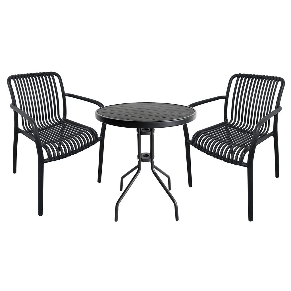 HECHT RIVA SET je praktický set stola a dvoch stoličiek navrhnutý na pohodlné posedenie na terase, balkóne alebo záhrade. Vďaka svojmu jednoduchému a modernému dizajnu sa ľahko kombinuje s ďalšími prvkami záhradného nábytku a je ideálny napríklad pre menšie vonkajšie posedenie, kaviarenský štýl stolovania alebo relaxáciu pri káve.