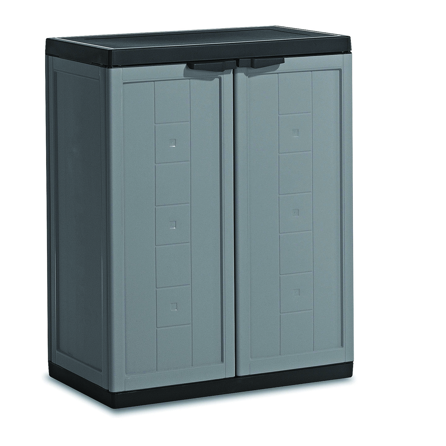 : KeterVýška 87 cm, šírka 68 cm, 1 nastaviteľná polica, nosnosť 15 kg, montáž bez náradia, uzamykateľná, sivá farba.
