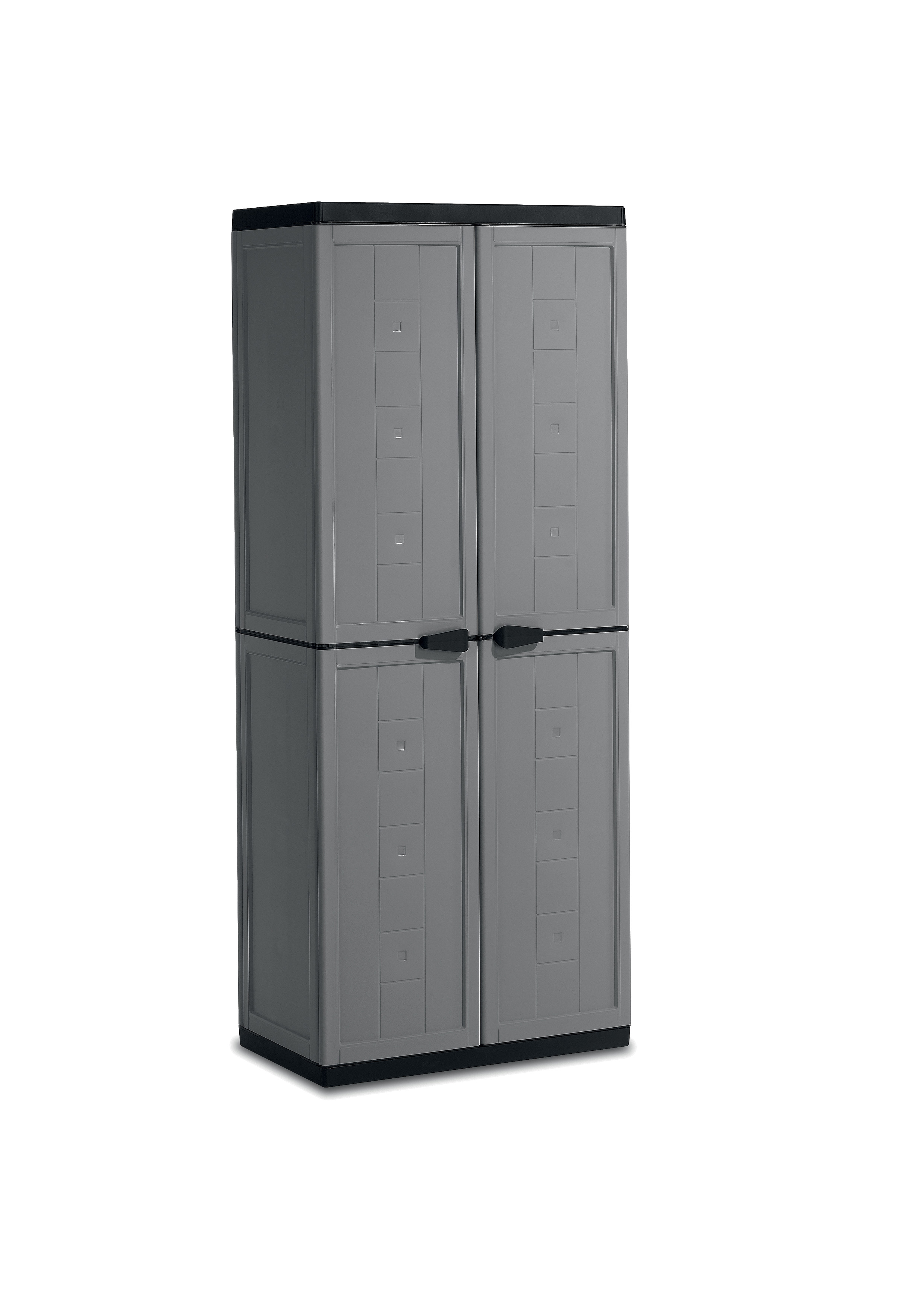 : KeterVýška 166 cm, šírka 68 cm, 3 nastaviteľné police, nosnosť 10 kg, delený priestor, montáž bez náradia, sivá farba.