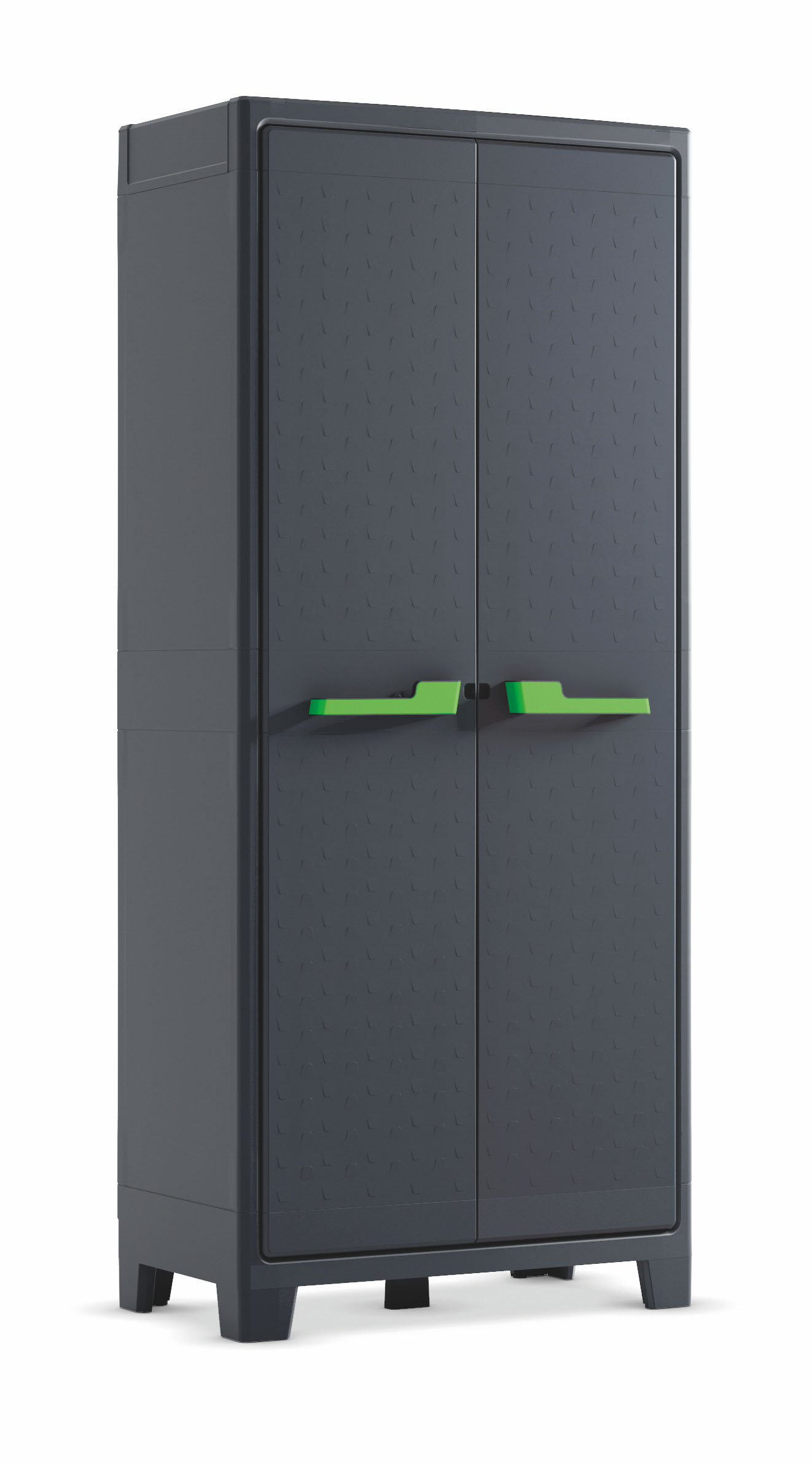 : KeterBezúdržbová skriňa na využitie vo vonkajšom aj vnútornom prostredí, jednoduchá montáž 4 poličiek, nosnosť jednej police 30 kg, zvýšené nožičky na ľahké čistenie podláh, možnosť uzamknutia, vysoká odolnosť. PP živice. Čierna.