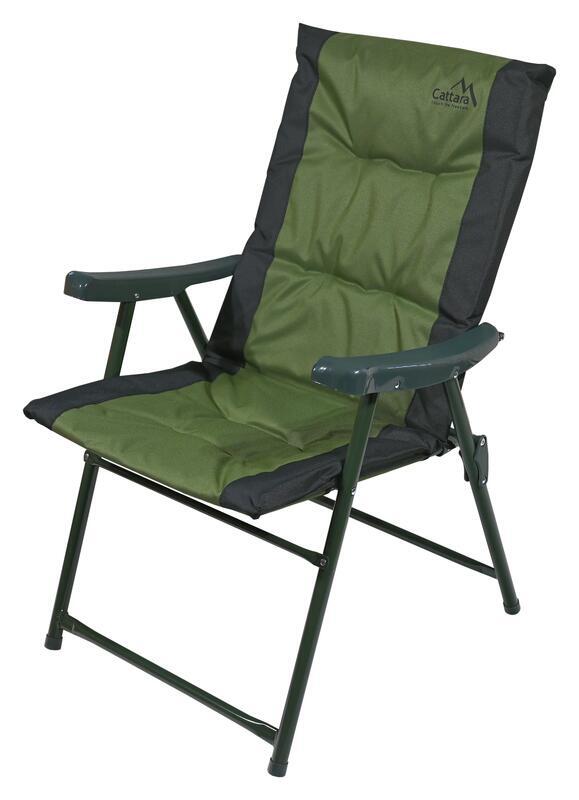 : CattaraSkladacia stolička s výplňou, nosnosť 120 kg, hmotnosť 3,9 kg, chrbtová a lakťová opierka, vysoký komfort.