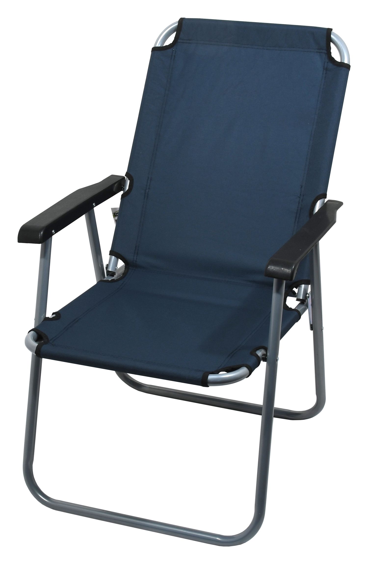 : CattaraĽahko prenosná skladacia stolička Lyon vhodná na kempovanie, posedenie pri vode aj na záhrade. Chrbtové operadlo a dve lakťové opierky. Nosnosť 90 kg. Tmavomodrá.