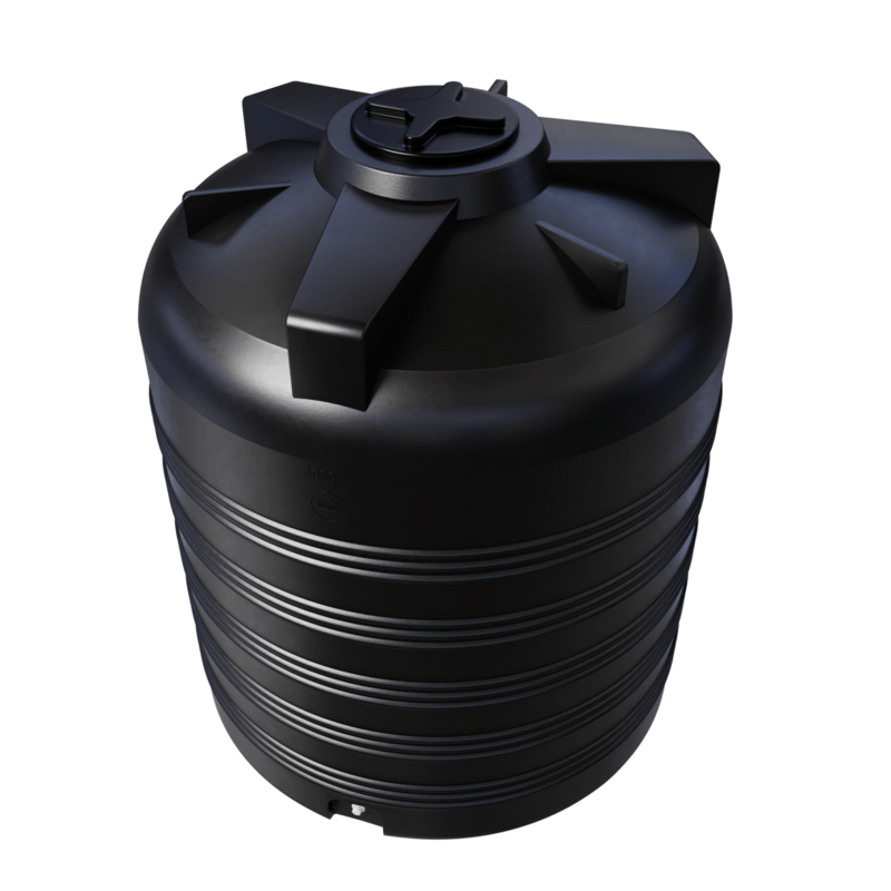 Čierny plastový sud na dažďovú vodu 3000L. Sud má A-TEST na uskladnenie pitnej vody i potravín.
