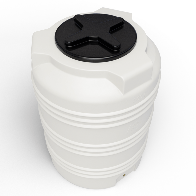 Biely plastový sud na dažďovú vodu 300L. Sud má A-TEST na uskladnenie pitnej vody i potravín.