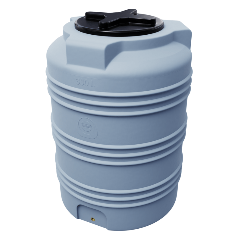 Sivý plastový sud na dažďovú vodu 300L. Sud má A-TEST na uskladnenie pitnej vody i potravín.