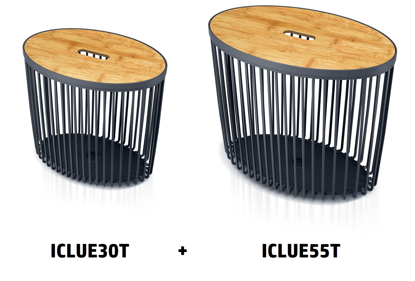 Súprava 2 univerzálnych oválnych košov s bambusovými vekami CLUBO 30+55 l - farba: antracitová