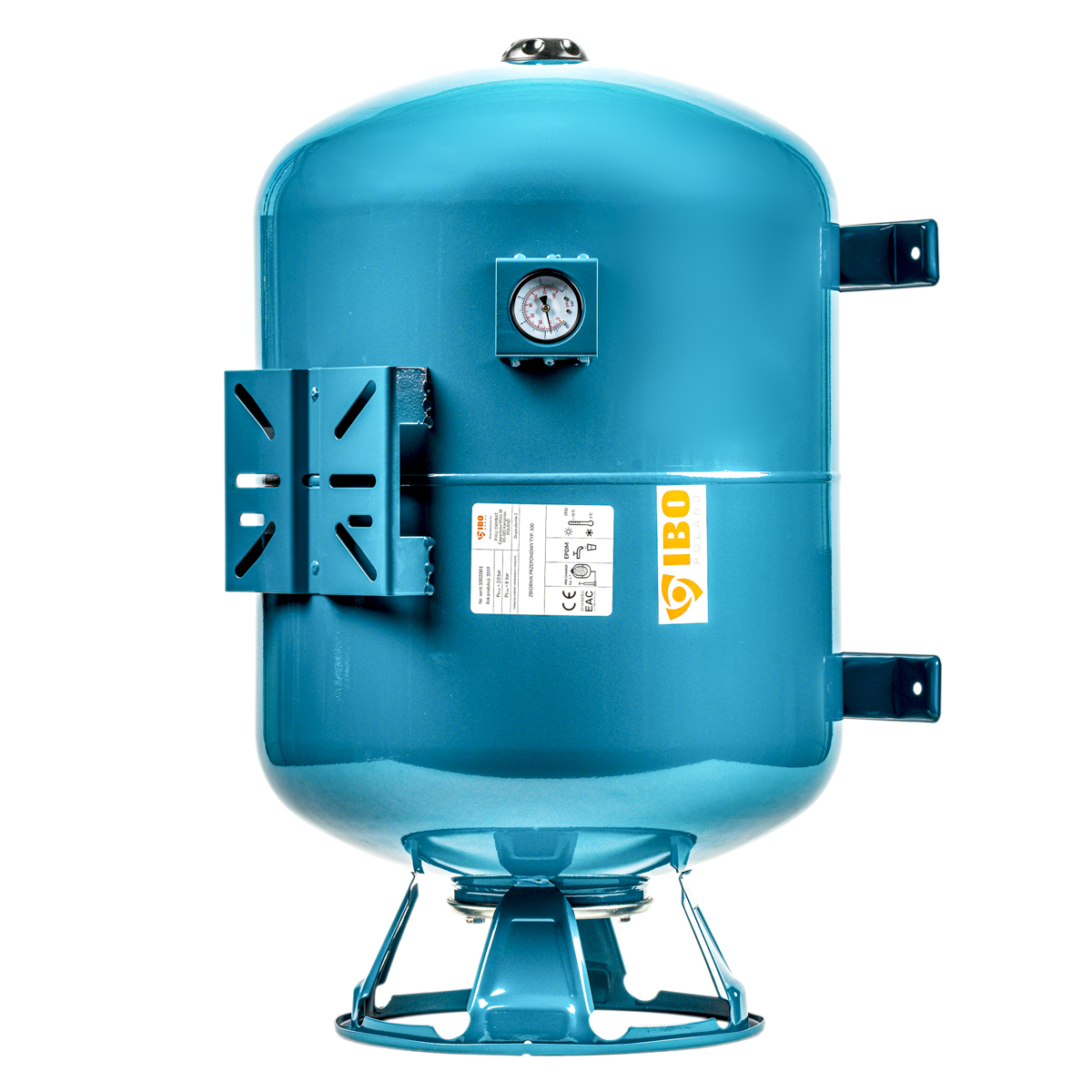 Tlaková nádoba stojato-ležatá IBO - 150l s manometrom, slúži ako zásobník čerpanej vody pre domáce vodárne, prečerpávacie a tlakové stanice alebo priemyselné stanice.