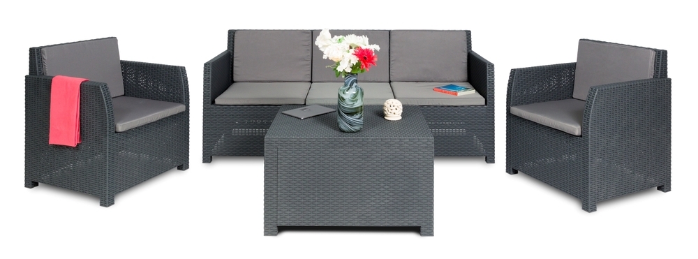 : ToomaxPredstavujeme Vám záhradný plastový set DIANA 5 SEATERS v elegantnom grafitovom prevedení, ktorý zjednocuje pohodlie a štýl na Vašej terase alebo záhrade. Tento sofistikovaný set, inšpirovaný prírodou, je vytvorený z lisovaného plastu s očarujúcou imitáciou ratanu, poskytujúci nielen estetický dojem, ale aj dlhodobú odolnosť voči nepriaznivým poveternostným podmienkam.
