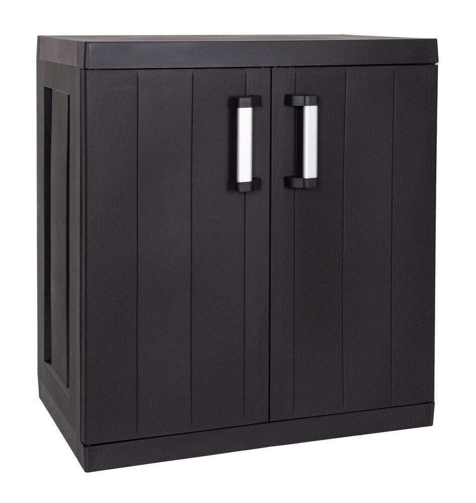 : ToomaxPriestranná praktická plastová dvojkrídlová skrinka GARAGE MEGA LOW v čiernej farbe. ODOLNÝ RECYKLOVANÝ MATERIÁL Skrinka GARAGE MEGA LOW je vyrobená z vysokokvalitného recyklovaného materiálu, ktorý zaručuje nielen dlhú životnosť, ale taktiež podporuje našu snahu o udržateľnosť a ochranu životného prostredia.