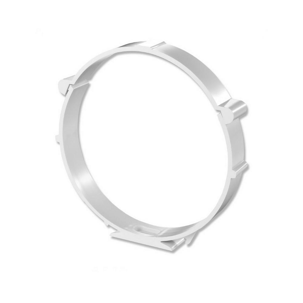 Okrúhly plastový držiak je určený na pripevnenie vzduchovodov na stenu alebo strop. Držiak je vhodný pre teploty do 45 °C a je vyrobený z materiálu ABS v bielej farbe.