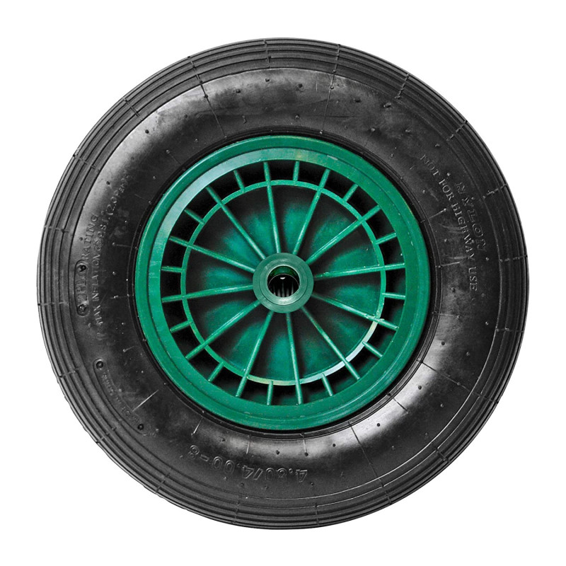 Náhradné koleso na fúrik (obj. číslo: 20448), ktoré je vhodné pre 20 mm čap kolesa. Ľahký plastový ráfik, robustná pneumatiky, valčekové ložisko. Nevhodné na použitie na verejných komunikáciách.