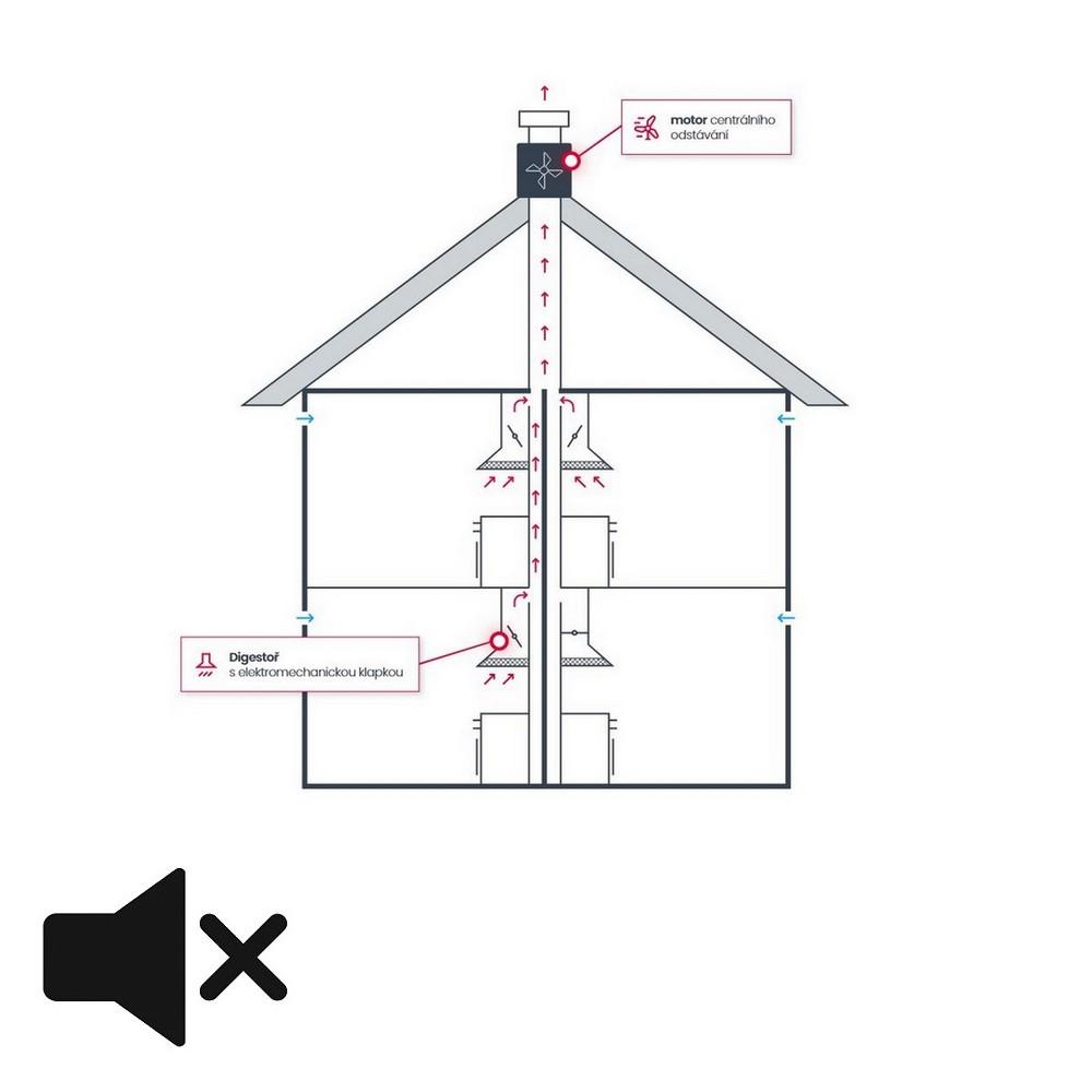 V obytných budovách s centrálnym odsávaním (centrálna vetracia jednotka) sa vyžaduje inštalácia odsávača pár bez motora s elektromechanickou uzatváracou klapkou (poznámka - nezamieňať s bežne používanou spätnou klapkou, ktorá nie je vhodná na tento účel). Odsávače pár označené ikonou CENTRÁLNE ODSÁVANIE je možné upraviť vyššie popísaným spôsobom.