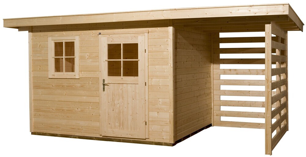 : WEKAZáhradný domček WEKA 170 A s elegantnou plochou strechou a prístavkom na uskladnenie dreva je moderným riešením úložného priestoru pre vašu záhradu. Záhradný domček je vyrobený zásuvným a skrutkovacím systémom z neošetreného dreva a na montáž domčeka nemusíte byť profesionálnym remeselníkom.