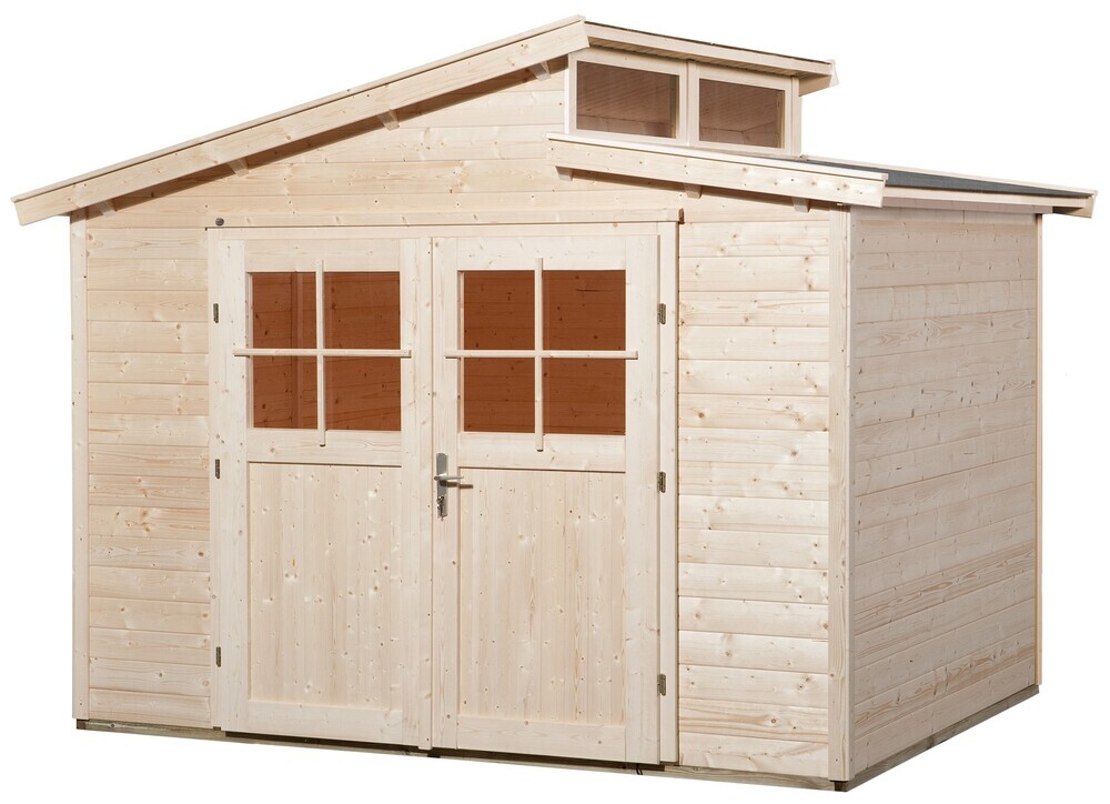 : WEKAZáhradný domček WEKA 226 sa pýši vysokou stabilitou a odolnosťou. Odsadená šikmá strecha obsahuje dve integrované strešné okná, ktoré poskytujú dostatok prirodzeného svetla.