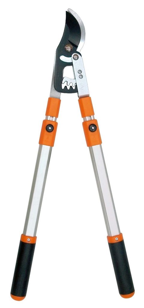 Dvojčepeľové teleskopické záhradné pákové nožnice pre prestrihávanie konárov a kríkov. Teleskopické rukoväte z hliníkovej zliatiny s možnosťou aretácie v piatich pozíciách od 70 do 104 cm dĺžky.