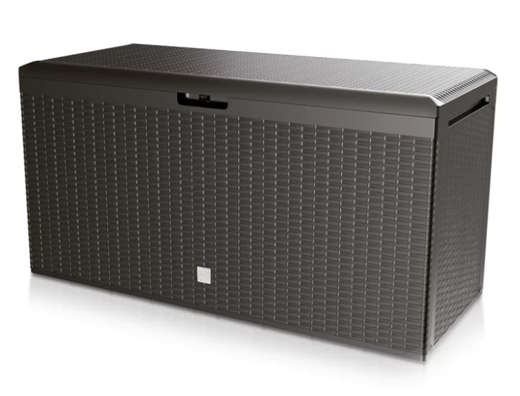 : ProsperplastZáhradný box s objemom 290 l. Dizajn pripomína ratan. Ideálny na záhradu, do pergoly či na balkón. Veko v hornej časti. Madlá a kolieska pre ľahkú manipuláciu. Jednoduchá montáž boxu.