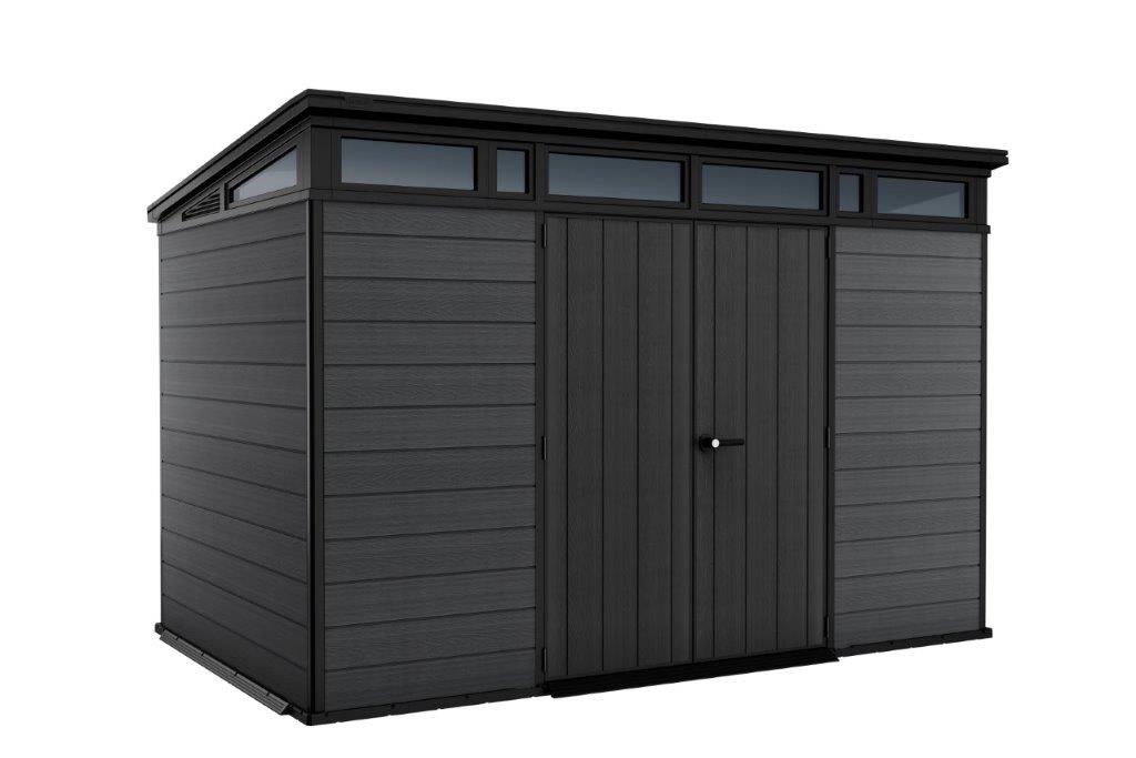 : KeterUzamykateľný a bezúdržbový domček na skladovanie záhradných, dielenských a športových potrieb, podlahový panel a strecha s nosnosťou až 150 kg/m2, patentovaný materiál Evotech a oceľová výstuž. Grafitová.