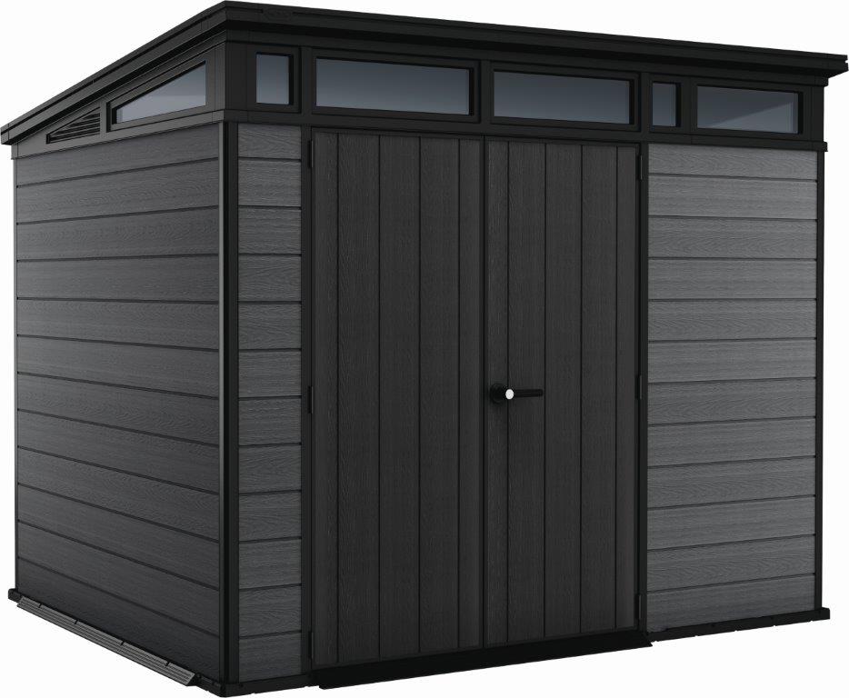 : KeterUzamykateľný a bezúdržbový domček na skladovanie záhradných, dielenských a športových potrieb, podlahový panel a strecha s nosnosťou až 150 kg/m2, patentovaný materiál Evotech a oceľová výstuž. Grafitová.