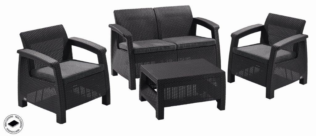 Záhradný nábytok Keter Corfu set dvojsedačka + dve kreslá + stôl grafitový