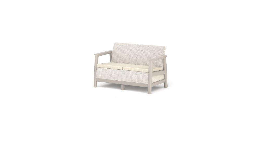 Dvojmiestna pohovka, rozmery 126 × 77,5 × 73 cm, hmotnosť 14,82 kg, odolná konštrukcia, bezúdržbový plast.