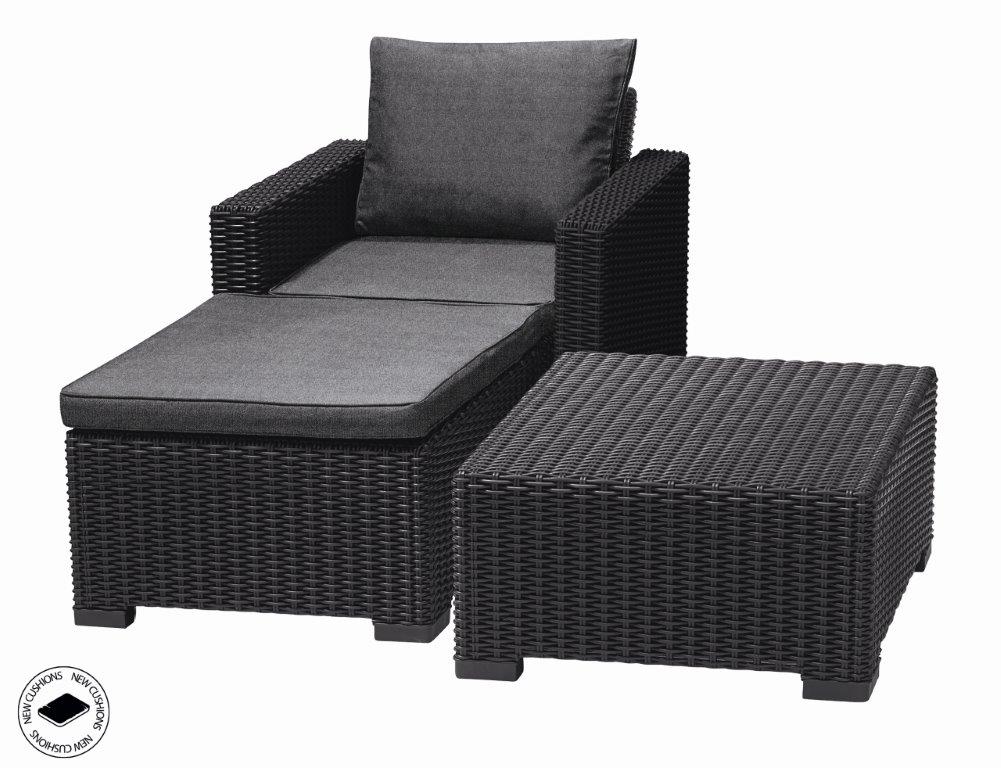 Záhradný nábytok Keter set stôl + kreslo + podnožka California grafitový