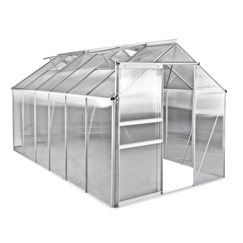 : DEMAStabilný skleník s ohromnou úžitkovou plochou 6,8 m2 a štyrmi strešnými oknami. Steny a strecha skleníka zo špeciálnych 6-milimetrových dutých komorových dosiek. Vysoká ochrana proti UV žiareniu (pri inštalácii dbajte na vnútornú a vonkajšiu stranu).