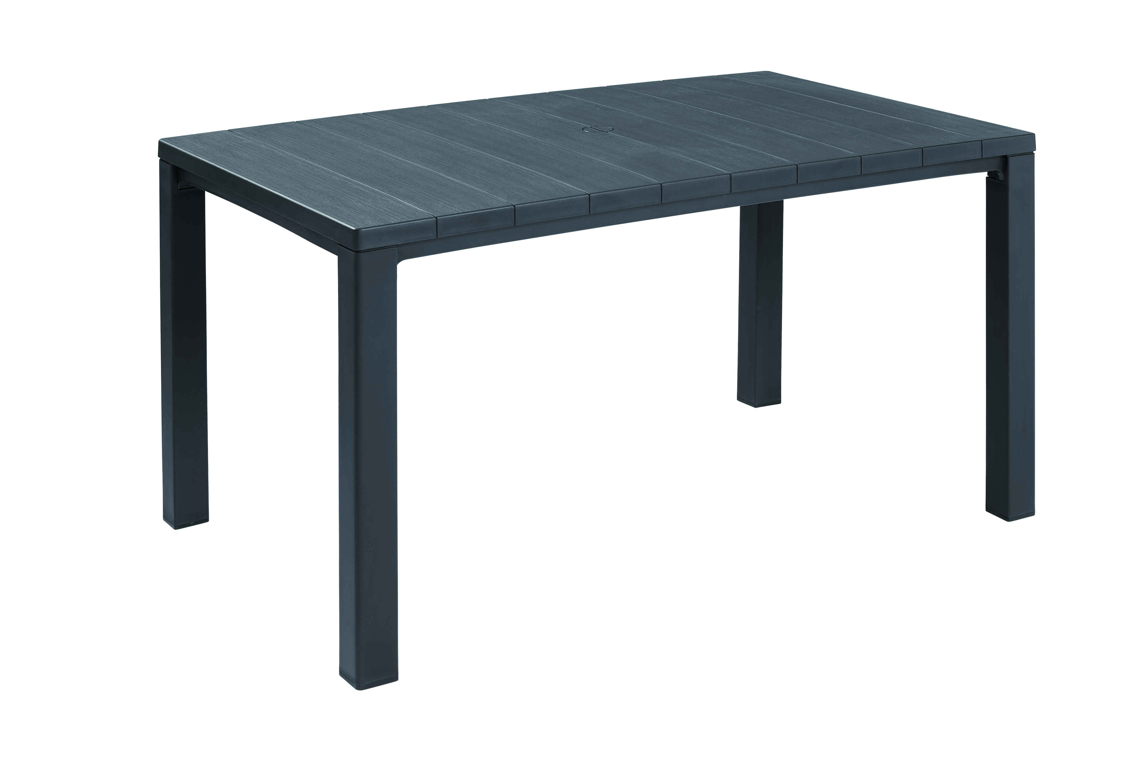 : KeterZáhradný stôl do klasického i moderného exteriéru, jednoduché zostavenie i údržba. Dizajn imituje drevo, odolnosť proti extrémnym vplyvom počasia, UV žiareniu, hnilobe a opotrebeniu aj výnimočná stálosť farieb, polypropylénová živica.
