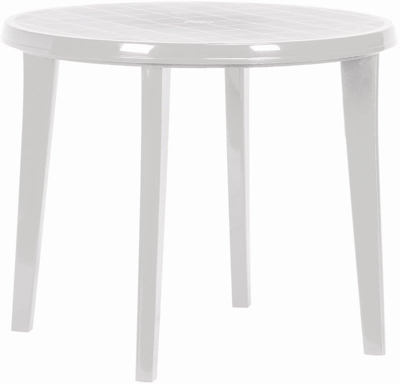 : KeterJednoduchý a praktický kruhový plastový stôl s priemerom 90 cm v elegantnej bielej farbe skvele poslúži na každej terase, pod pergolou, na posedenie pri bazéne alebo kdekoľvek inde. Duté nohy možno naplniť pieskom. Otvor pre slnečník.