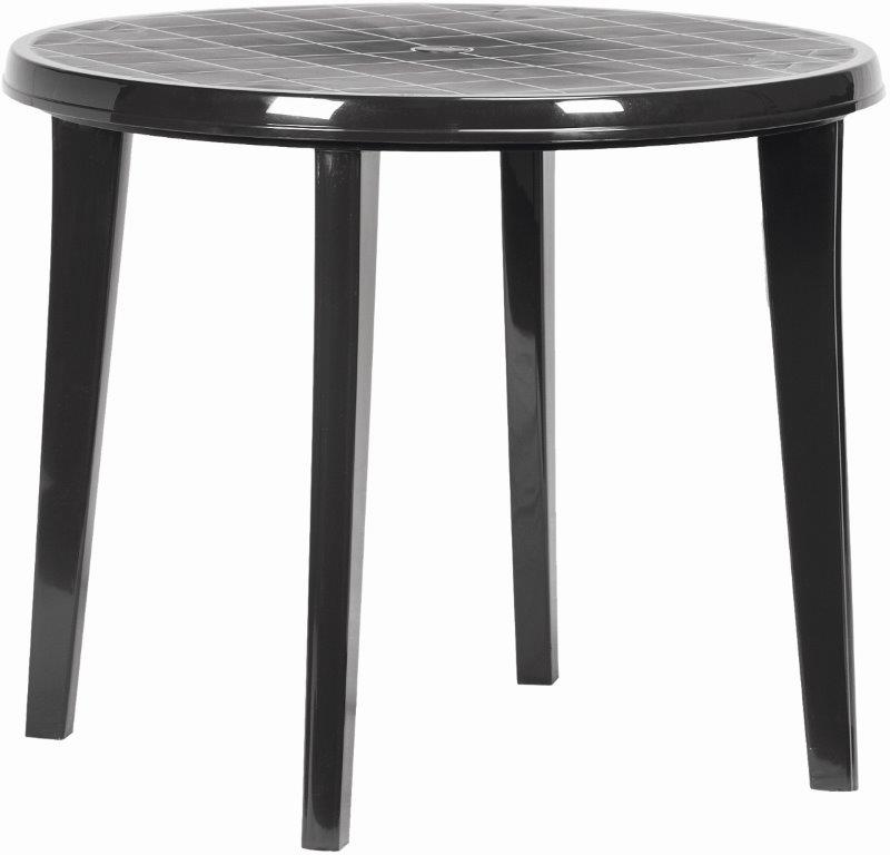 : KeterJednoduchý a praktický kruhový plastový stôl s priemerom 90 cm v elegantnej grafitovej farbe skvele poslúži na každej terase, pod pergolou, na posedenie pri bazéne alebo kdekoľvek inde. Duté nohy možno naplniť pieskom. Otvor pre slnečník.